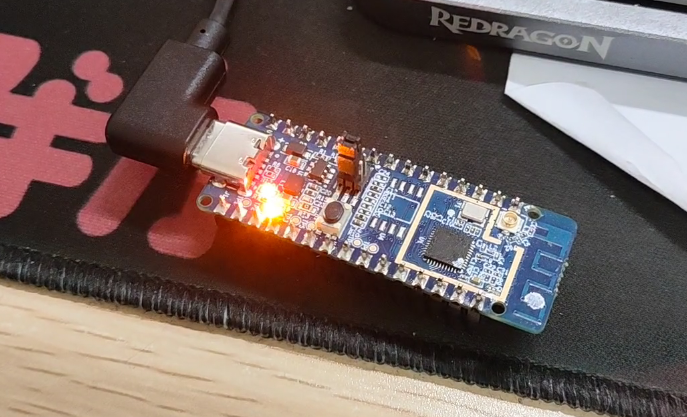 烧录完成,刚刚焊接的 LED 符合预期的闪了起来,又可以在会使用的开发板里新增一行了