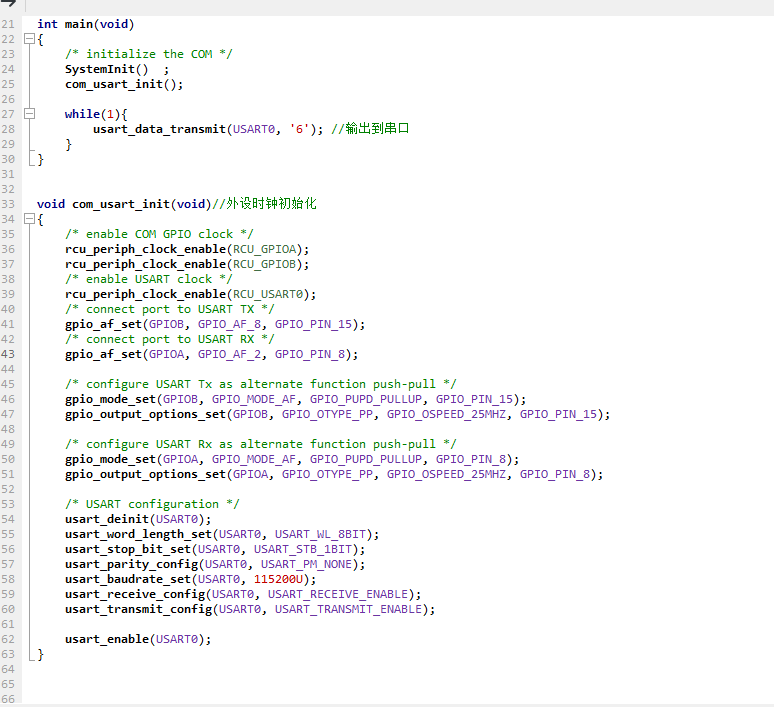 主题代码部分,直接用串口发送函数了,不用fputc重定向printf了。