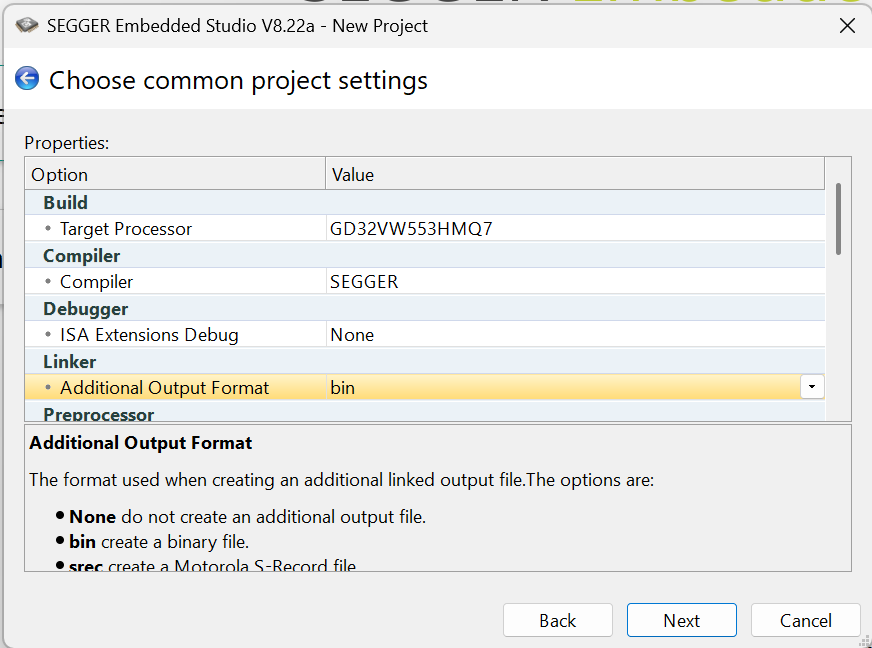 4、下一步后将Additional Output Format设置为bin文件(你想要得到hex就选hex),然后下一步
