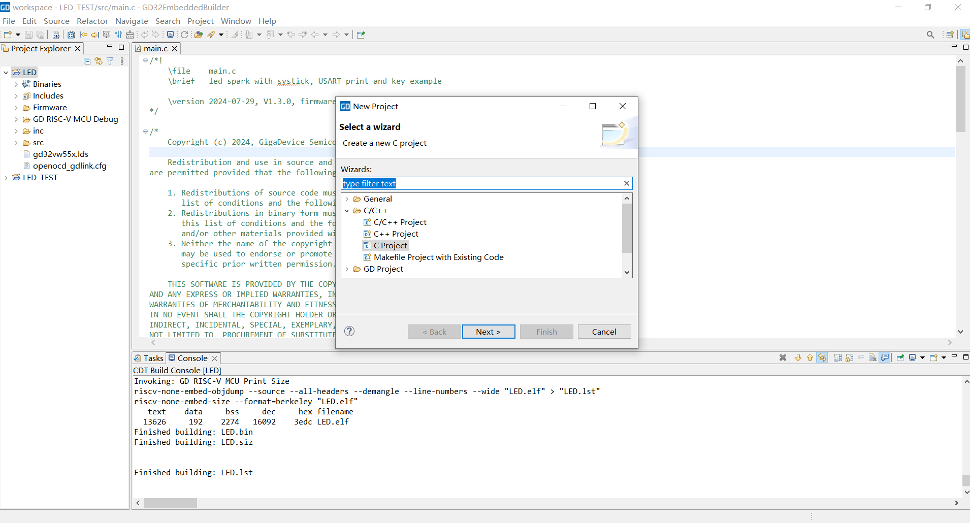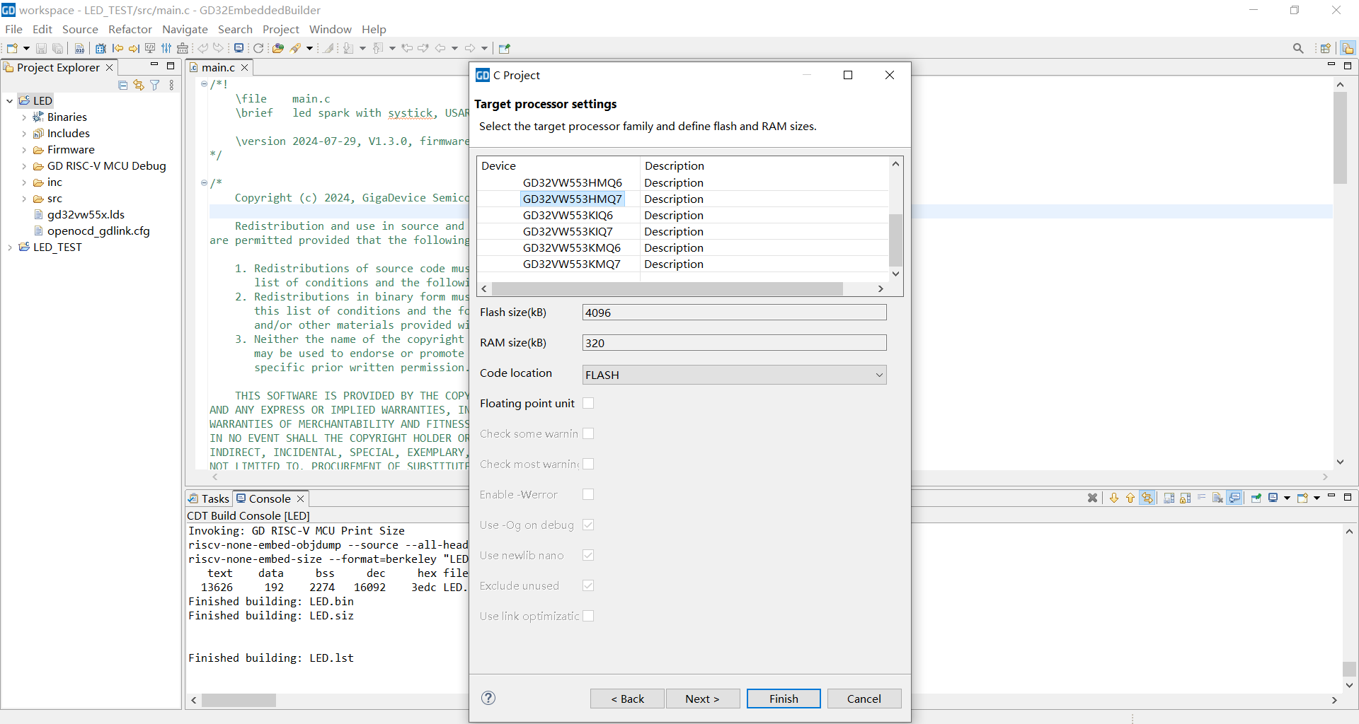 GD32VW553-IOT开发板点灯