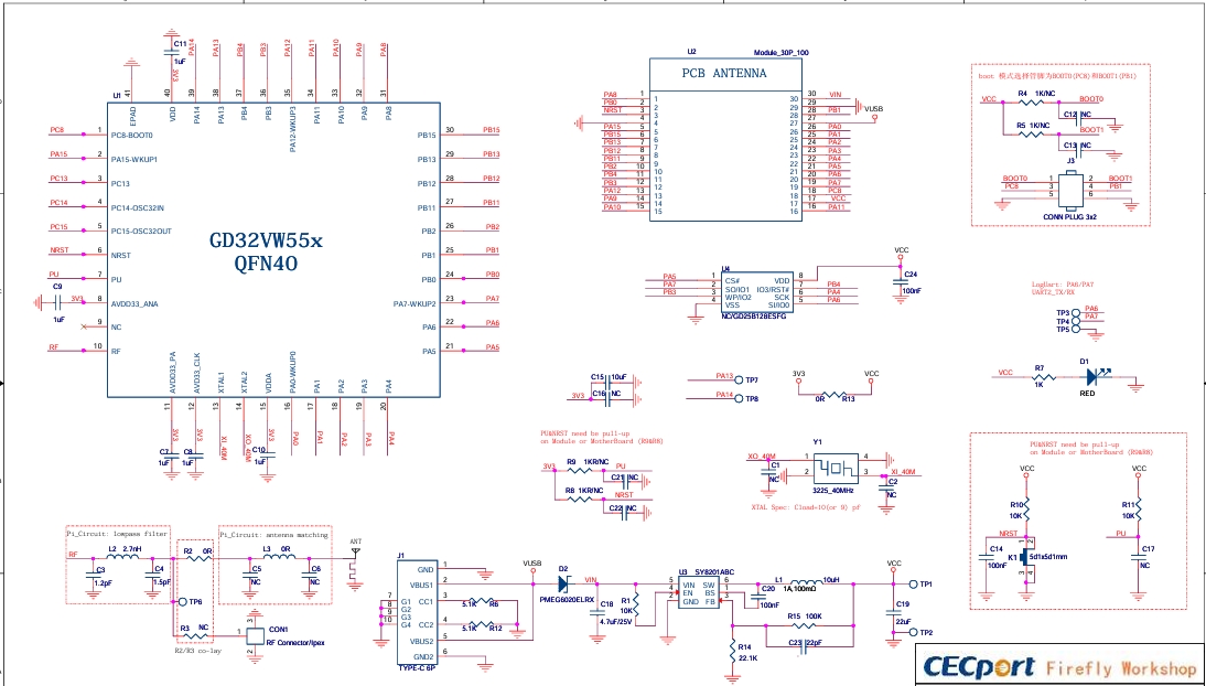 萤火工场开发板GD32VW553-IOT物联网开源硬件开发板整体测试下来就是感觉非常麻烦,板子设计非常不合理,芯片核心电路好像直接复制模组的PCB模组,外围屏蔽地与排针距离太近,板子一些元器件也焊接不完整,下载烧录切换跳线帽的方式太麻烦。最后就是板子丝印不完整。