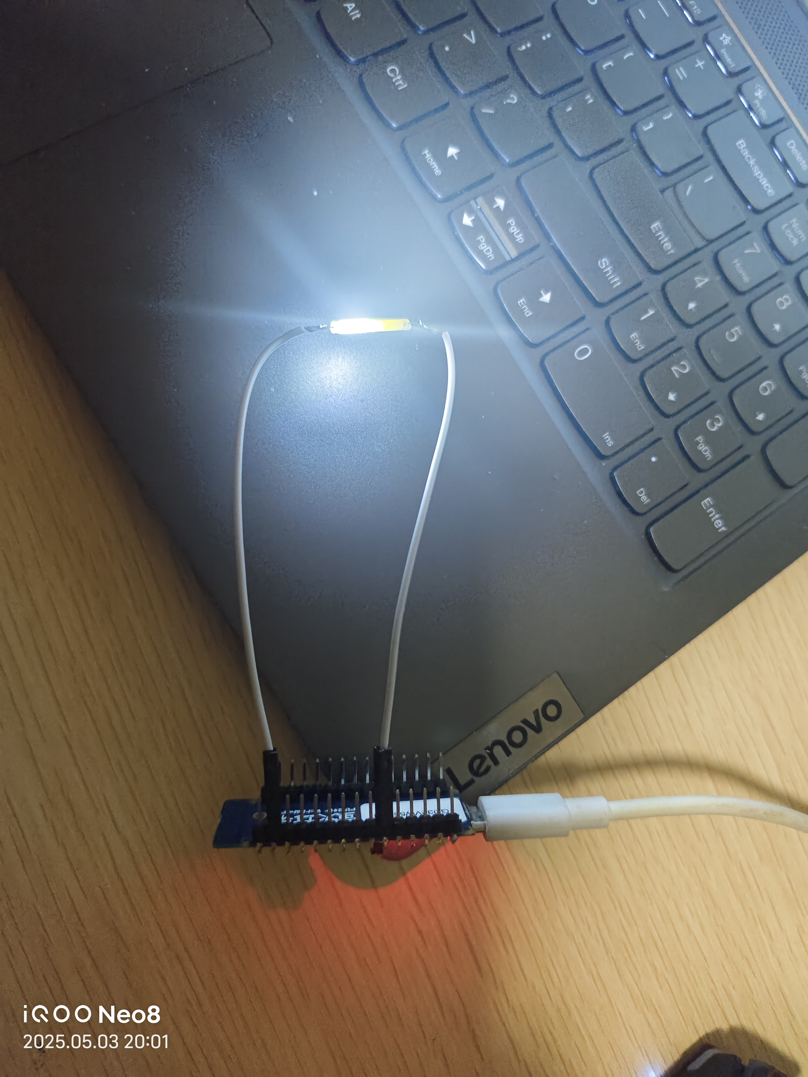 开发板上没有灯,只能找找看有没有灯,结果就找到了一个断了的灯丝,还好可以亮。