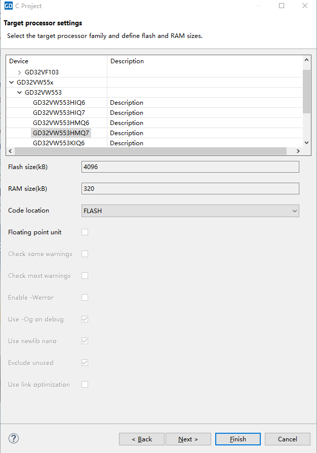 点击 File ->New Project->C Project ->RISC-V架构 然后选择正确芯片即可。