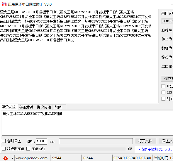 烧录完成后,将BOOT0连接GND,然后按 复位按键 复位开发板,串口读取后 ,按照原来输出。