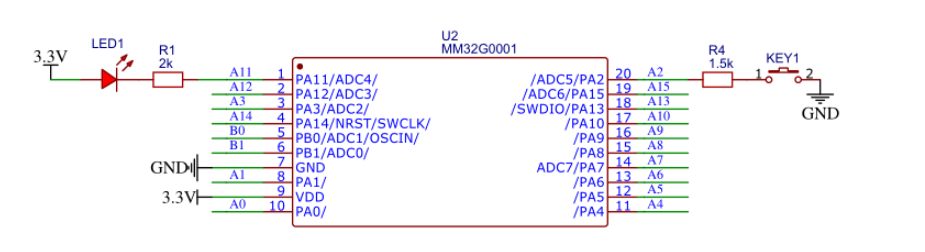 打开原理图 发现有一个LED灯连接的是A11 今天就用定时器使他闪烁