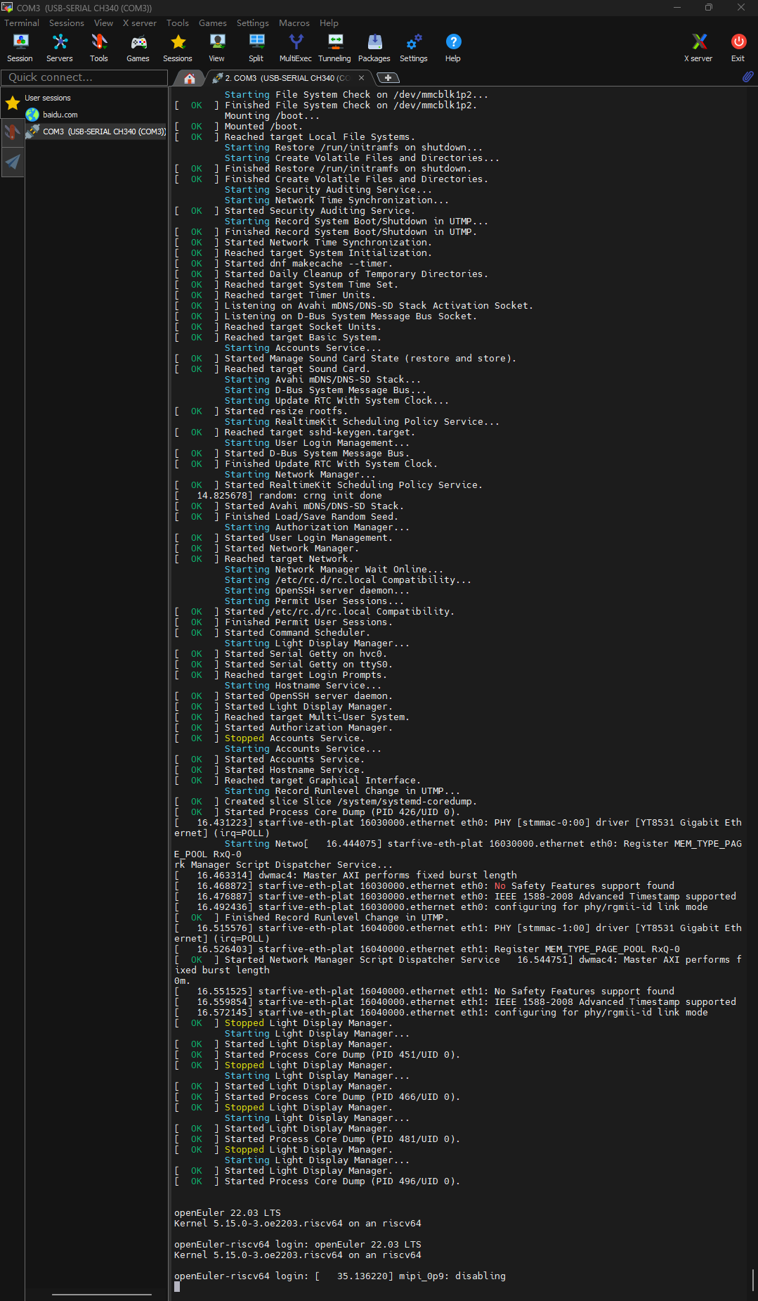 执行以上命令后,VisionFive V2开发板成功实现了openEuler系统的自动引导。