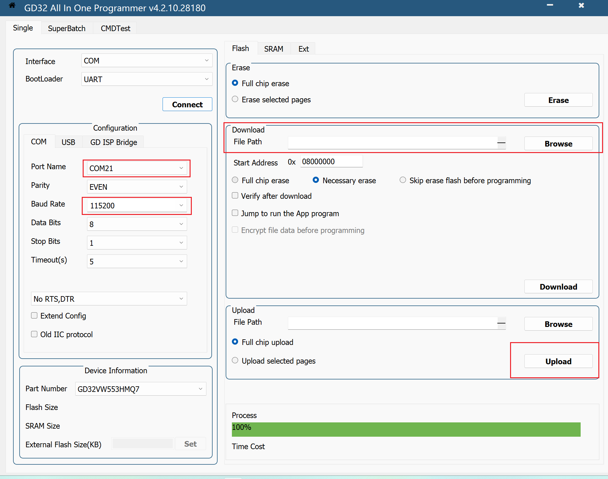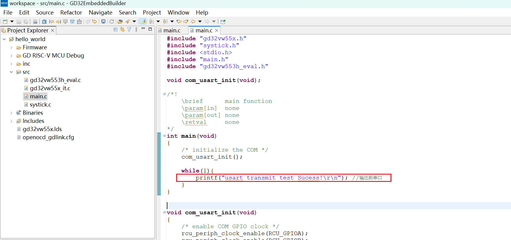 1、第一步观赏一下测评的开发板2、第二步开始点灯由于板上没有led灯,选择串口输出3、第三步将代码烧录到开发板使用GD32的万能烧录工具,烧录的时候要注意跳线帽要错开4、第四步串口打印恢复跳线帽,连接ttl转串口