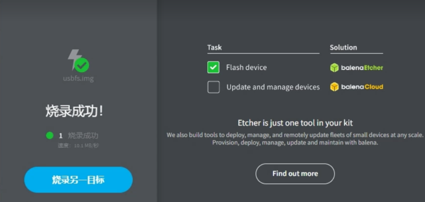 使用blaenaEtchener工具将usbfs.img文件烧录到SD卡