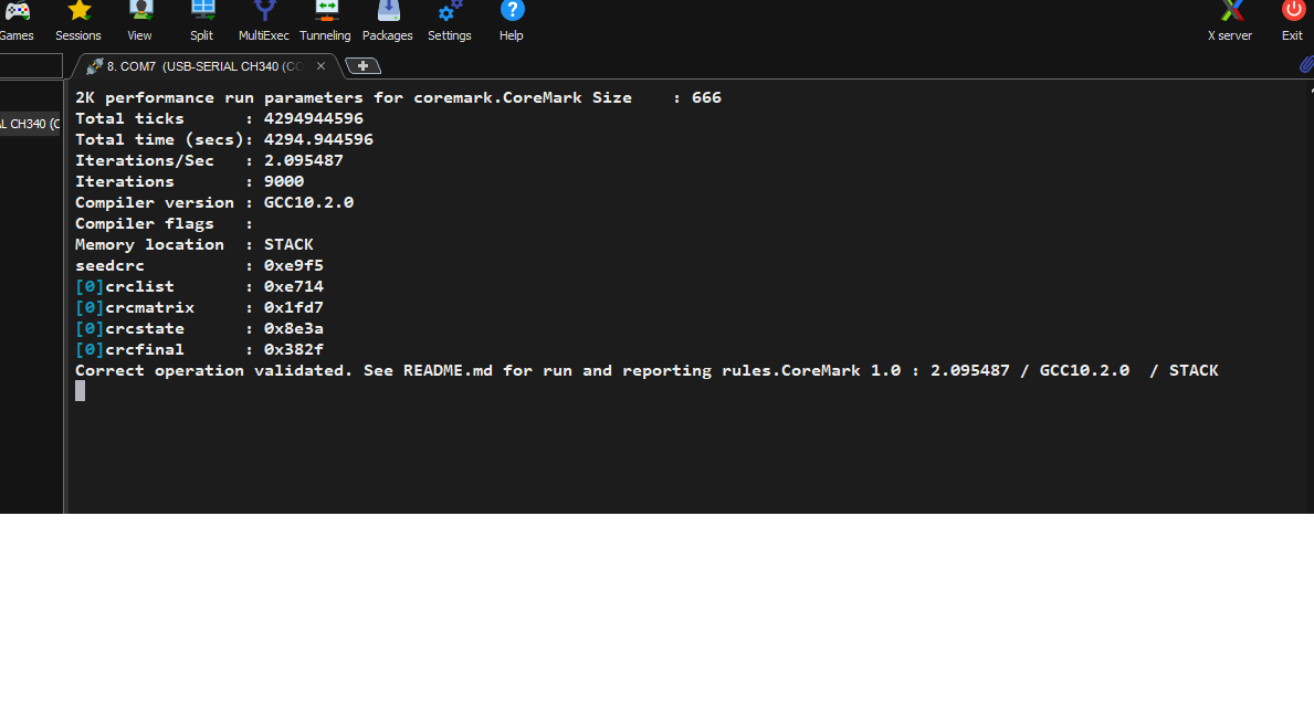 免费样品进行coremark测试.