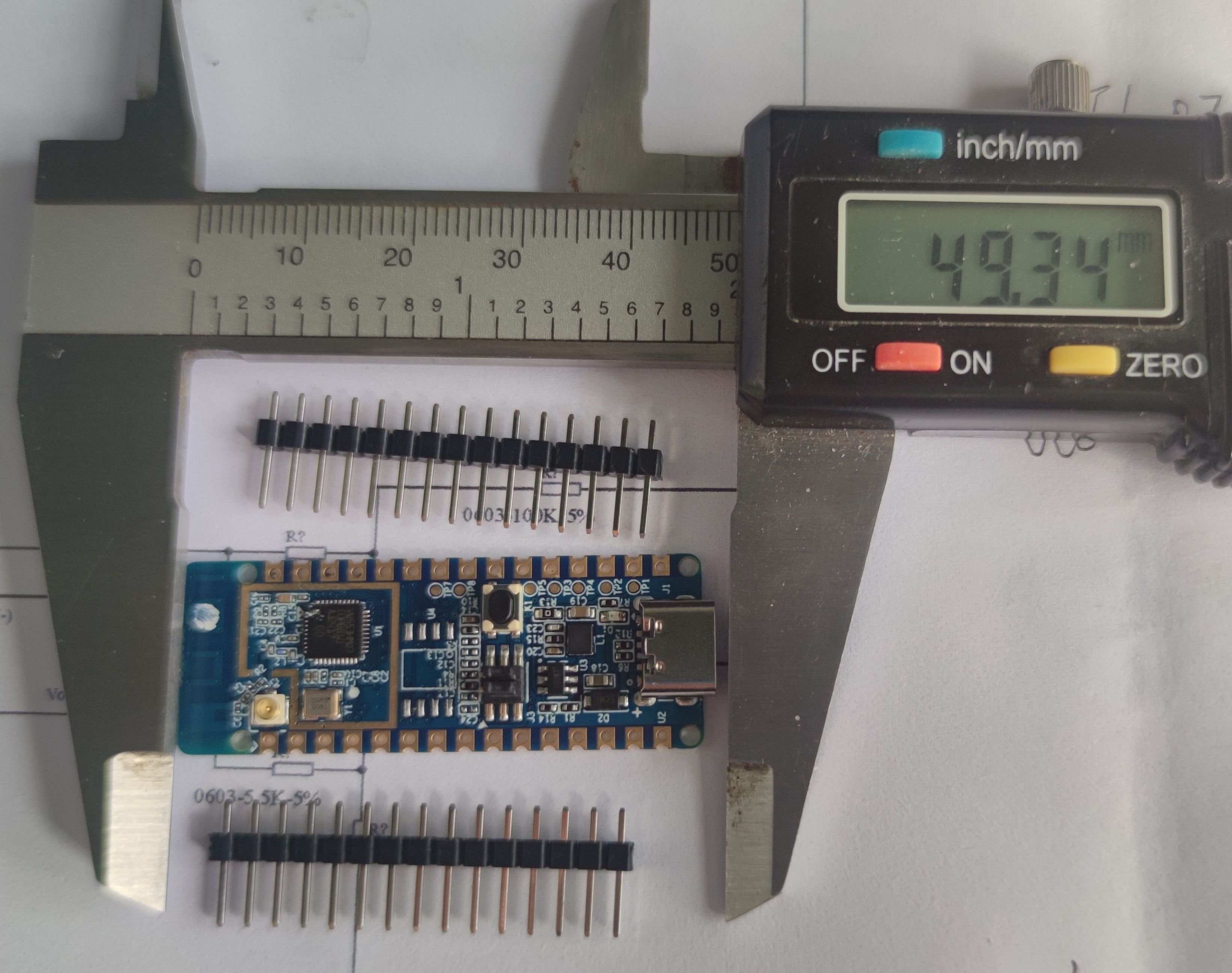 申请后一个月收到开发板,拇指大小,0.8mm板厚。