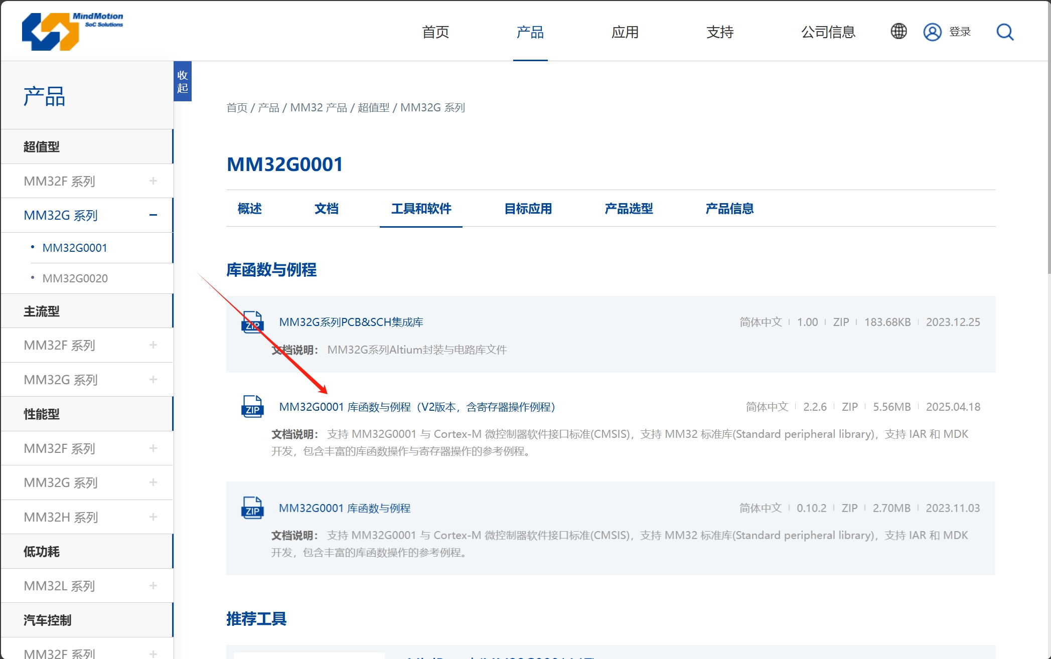例程:https://www.mindmotion.com.cn/products/mm32mcu/value_line/mm32g_value/mm32g0001/ (在工具与软件里)