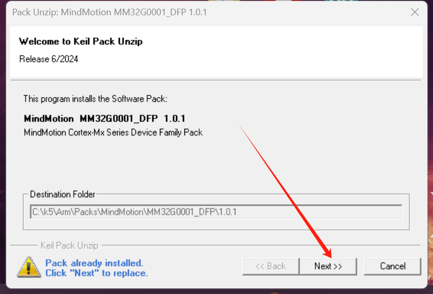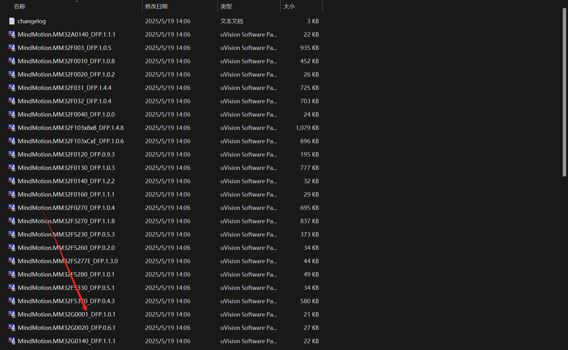 首先解压下载的压缩包,接着打开MindMotion.MM32G0001_DFP.1.0.1