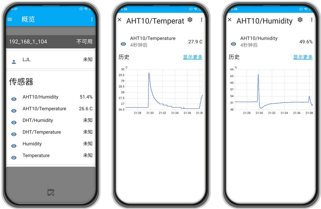 分别点击 Humidity 和 Temperature 查看历史数据。
