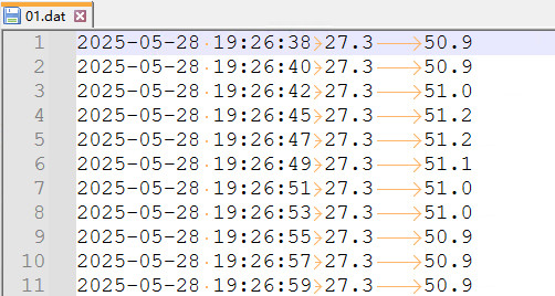三列数据依次为日期时间、温度、湿度数据,便于数据分析与处理。