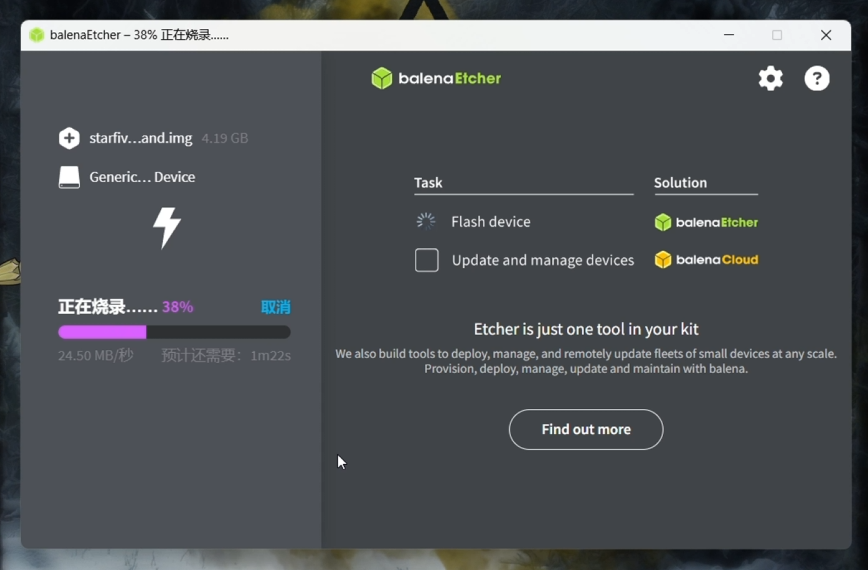 准备一张 32GB 以上大小的 TF 卡,在 https://debian.starfivetech.com/ 下载系统镜像,使用 balenaEtcher 将系统镜像烧录到 TF 卡中