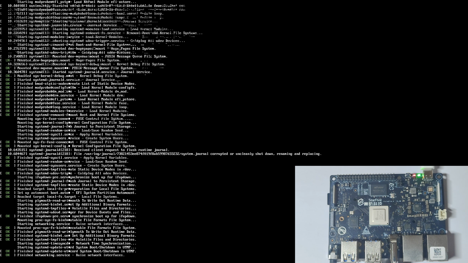 烧录完成后,将 TF 卡插入昉·星光2的卡槽,连接好网线、USB 鼠标、USB 键盘和 HDMI 线,插上电源线即可开机