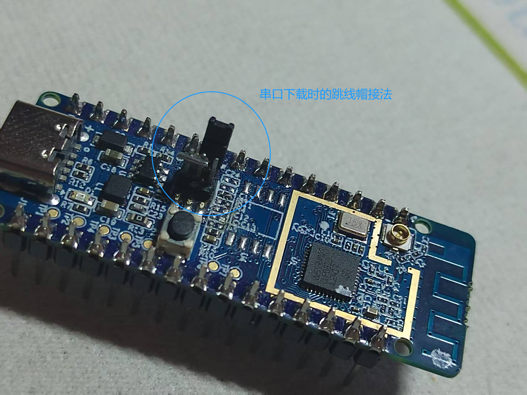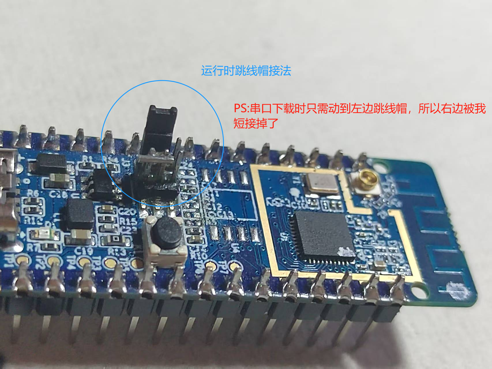 然后进行串口烧录 跳线帽按下载时的方式接好 串口工具 接线为