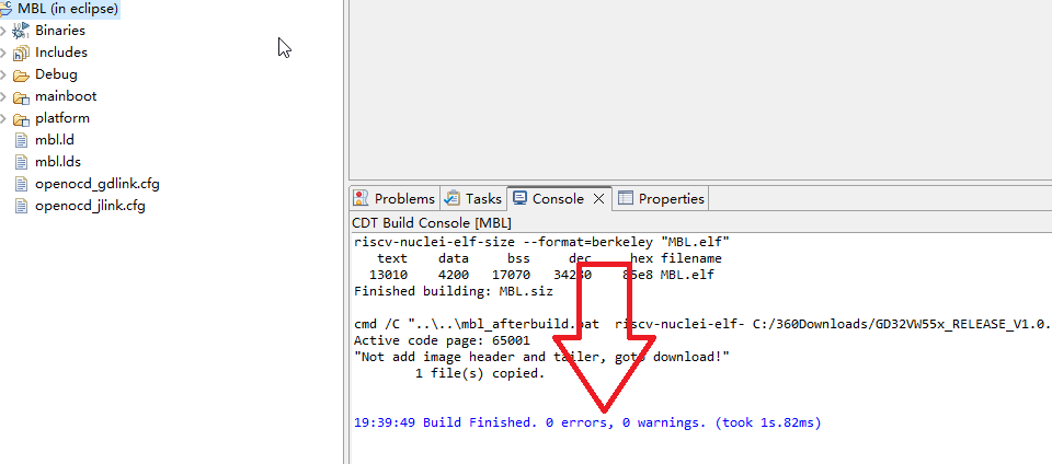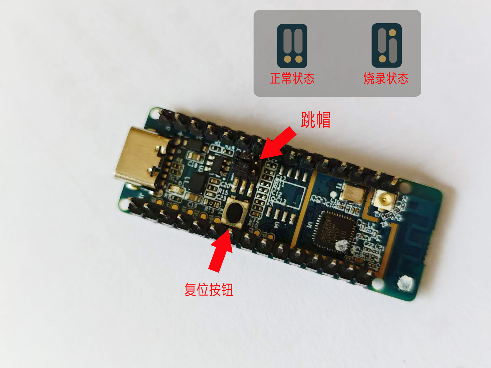 上面完成了项目导入和编译操作,找到编译完成的固件文件,准备下一步烧录到开发板,首先根据下图所示,将开发板跳帽进行设置,调整为烧录状态