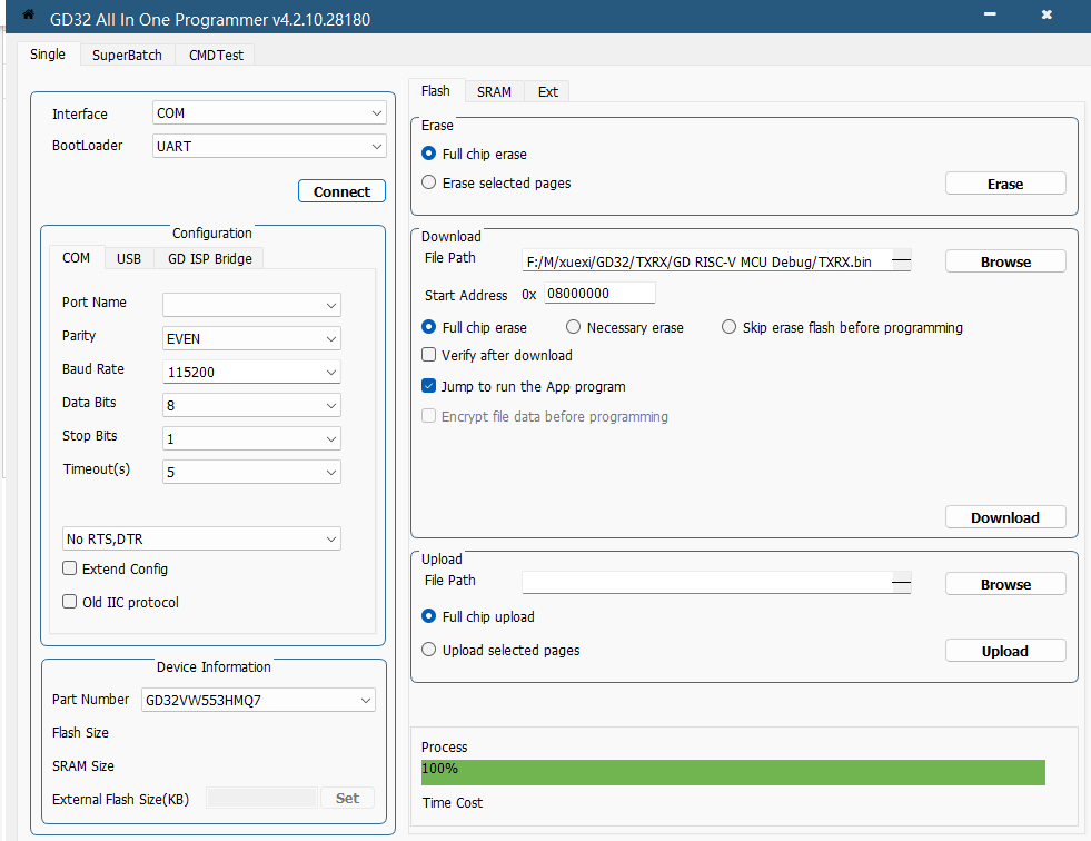 生成了一个BIN文件在 创建工程文件夹的 GD RISC-V MCU Debug下