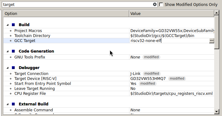 简单说几个点吧!需要修改 GCC Target,经过测试 Embedded Studio 自带的 RISC-V 工具链都可以编译通过,前提是需要把 RISC-V 扩展指令集 bp 给关掉.