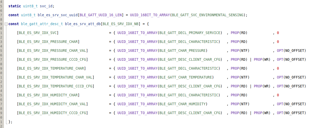 Bluetooth SIG 针对环境监测服务有相关规范,正好囊括温湿度和气压,采取拿来主义,这样就不必自定义 UUID 又具有通用性(可以和识别 Bluetooth SIG 下环境监测服务的软件进行互操作).