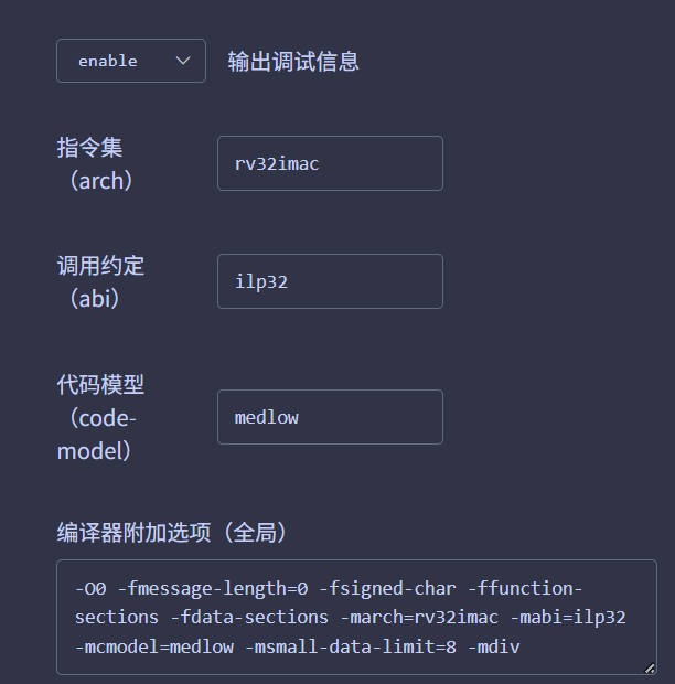 = -march=rv32imac -mabi=ilp32 -mcmodel=medlow -msmall-data-limit=8 -mdiv
