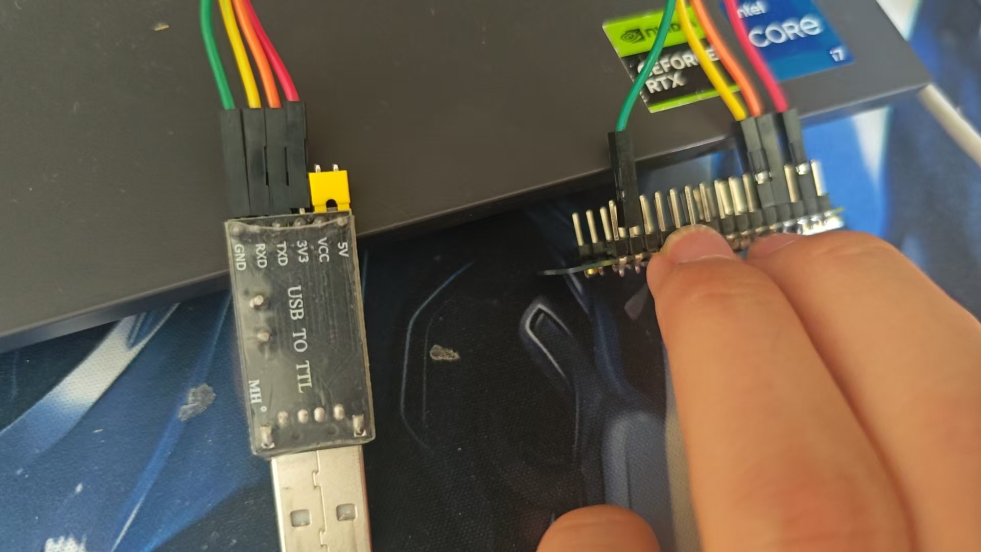 - 接线:将模块的TX、RX分别连接开发板的UART_RX、UART_TX,共地后接入电脑USB口;