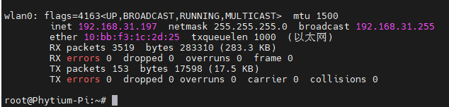输入ifconfig 其中Wlan0这里的IP就是我们的登陆ip