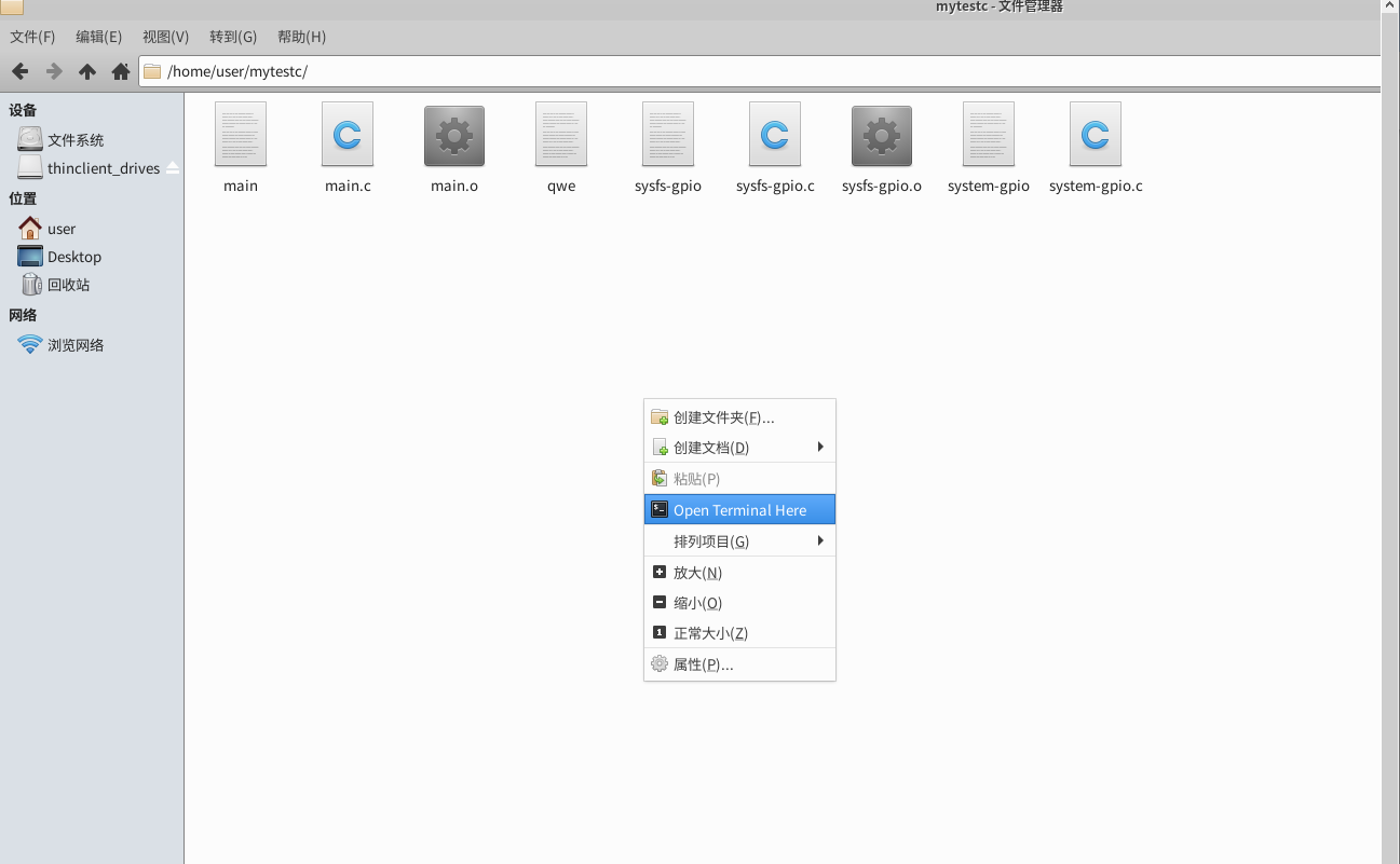 由于我是把程序放到我自己新建的一个文件夹内,所以我们需要重新设置一下我们的一个路径,你可以直接打开普通的一个窗口,用cd指令跳转,也可以直接点到对应的文件夹,直接右键选择上图中的那个按钮即可。
