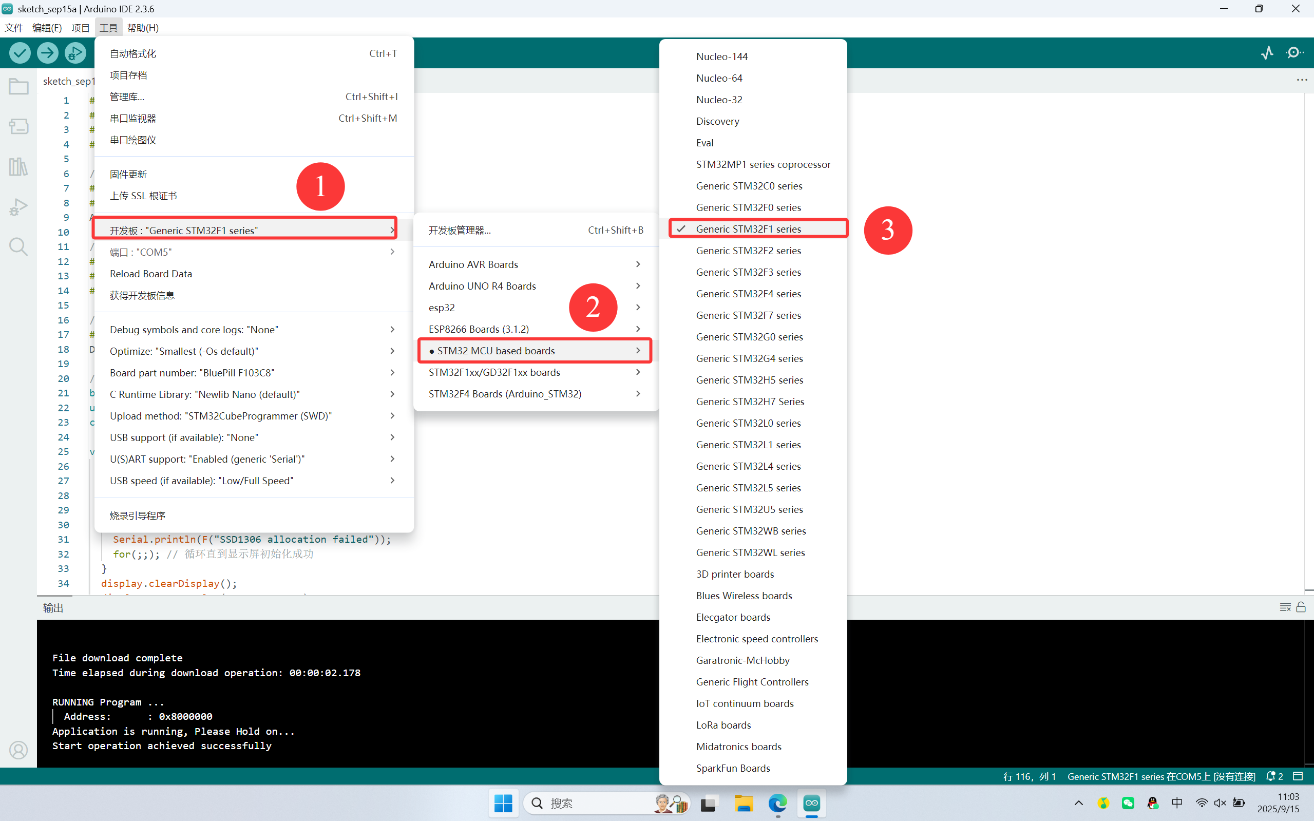 }开发板选择图(关于这一步部分可以见 CSDN 或自行在Arduino IDE中配置STM32开发环境)