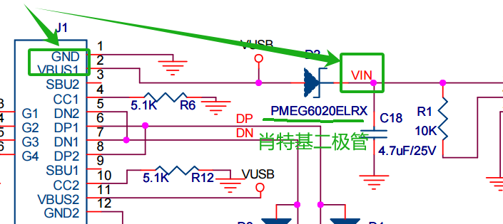 VBUS和VIN:VBUS是直接从Type-C取的电源,而VIN是整流后的VBUS,属于同一种;这两种,开发板都给引出来了,作为对外的供电接口。