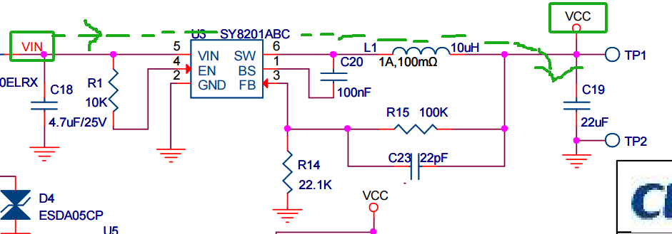 围绕SY8201ABC的电路就是为了调节这颗降压型DC-DC电源芯片的输出电压。
