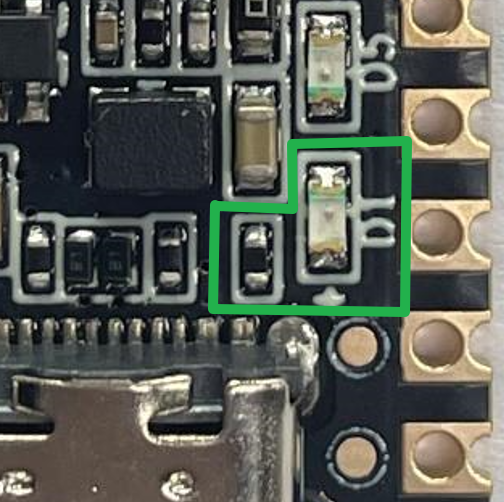 在实物中的供电LED指示灯在这个位置