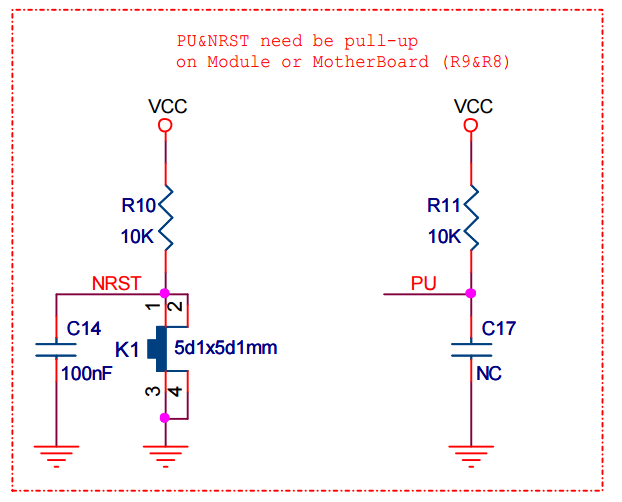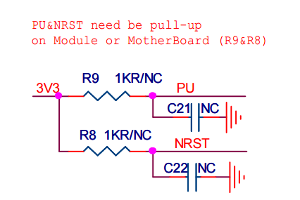而且这个PU是跟着复位引脚一起出现的,应该是有特殊的功能吧,但是我读数据手册的时候也没有搞明白这个的含义。