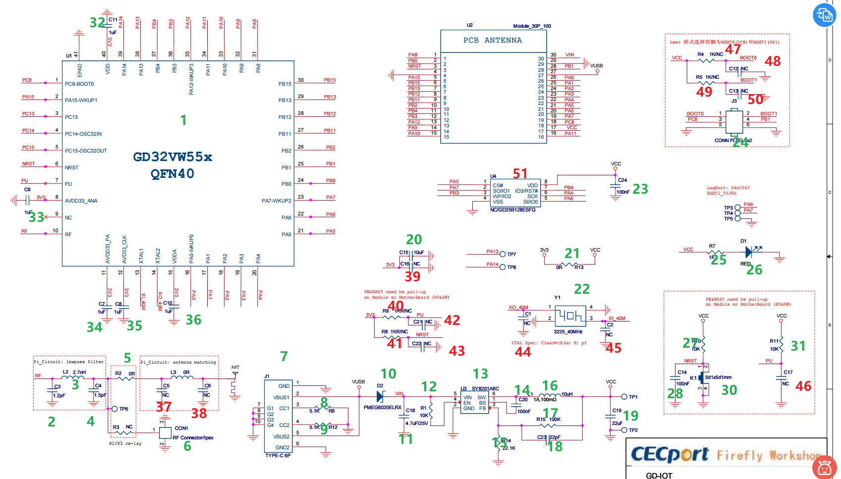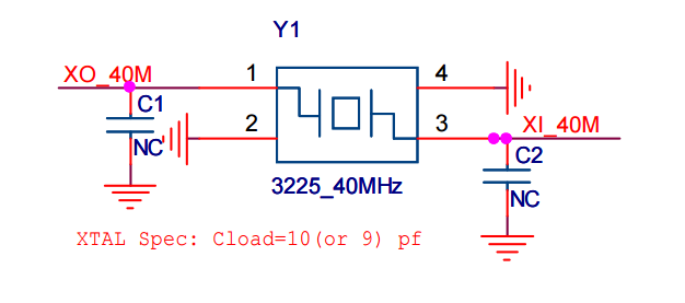 这个是为GD32VW553提供时钟的无源晶振电路,核心作用是给芯片输入稳定的40MHz时钟信号,负载电容没有焊接安装。