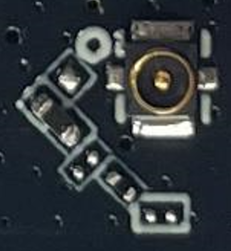 结合电路可以看到,这里正好匹配上了,C5,C6也是预留状态,实物中也是没有焊接安装。让后另一半部分就是预留了同轴天线座,使用一颗0Ω电阻进行切换。萤火工场在设计PCB的时候使用了一个很巧妙的设计,就是将R2,R3一个一个焊盘合并了,板载天线和外接天线有且只能选一种。