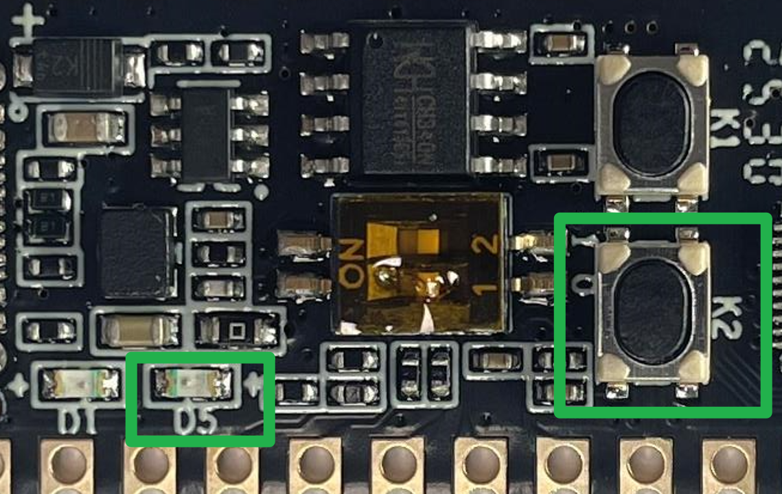 开发板为我们准备了一颗“用户”指示灯D5,一个“用户”按键K2,可以快速上手,点亮开发板,写下这块开发板的“Hello World!”。