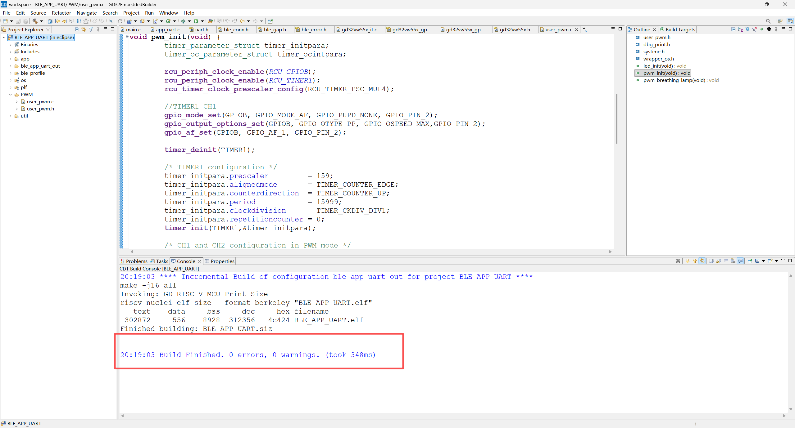 烧录,查看现象,发现LED高低闪烁,形成PWM输出。