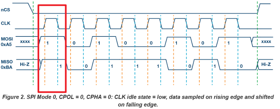 CPHA:时钟相位。表示 SCLK 的边沿,当 CPHA=0,表示第一个边沿,CPHA=1,表示第二个边沿,看不懂可以理解为CPHA=0就是上升沿(0到1的跳变),CPHA=1以此类推。(如果空闲时钟信号为高电平CPHA=0就是下降沿(1到0的跳变),CPHA=1以此类推)