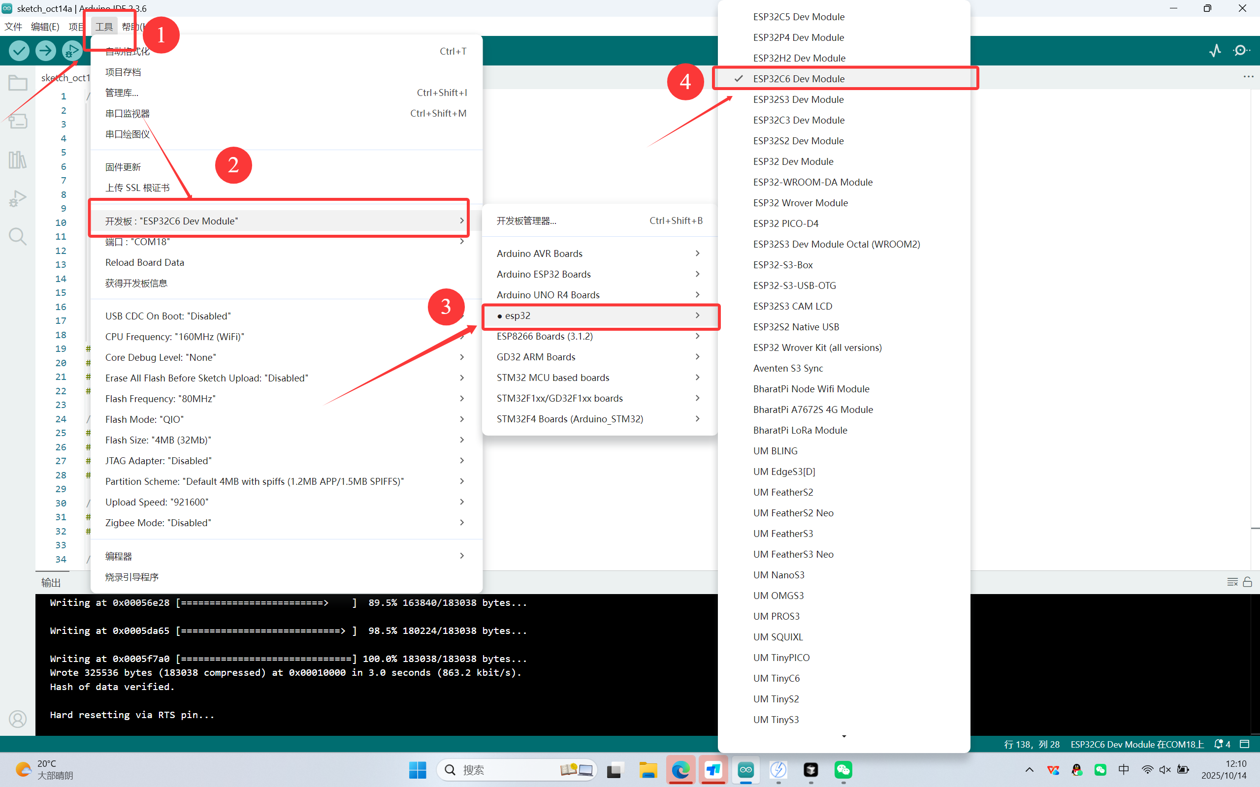 `工具` → `开发板` → `ESP32 Arduino` → `ESP32C6 Dev Module`