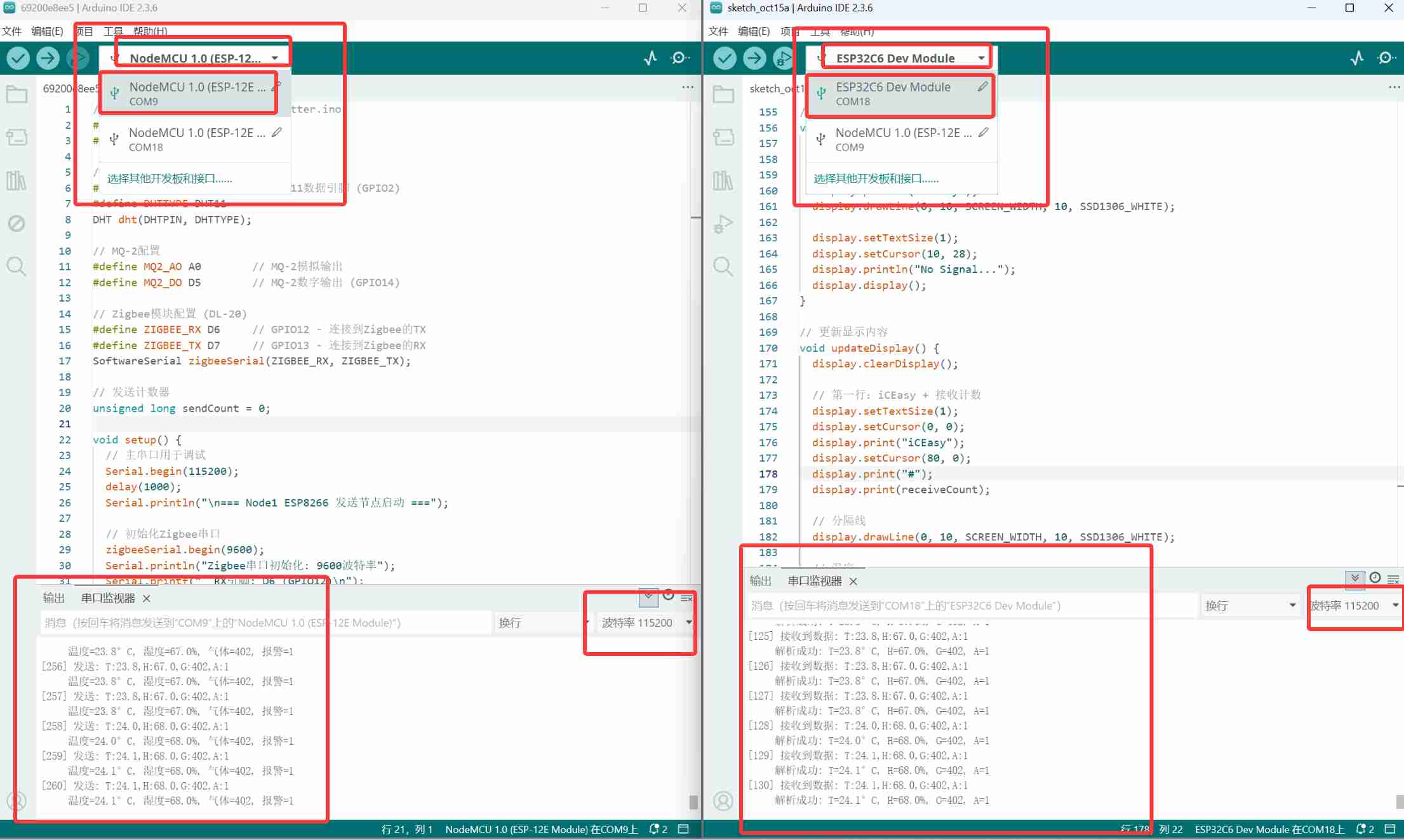 | 编译错误 | 开发板选择错误 | 节点一选ESP8266,节点二选ESP32C6 |