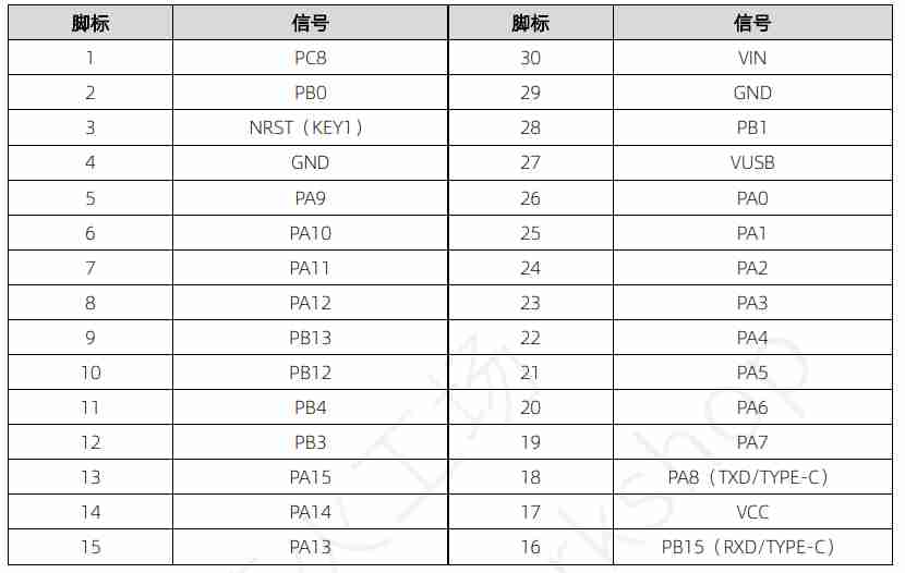 - GPIO:24 个可编程引脚(PA0–PA15, PB0–PB1, PB3–PB4, PB12–PB13, PB15, PC8)