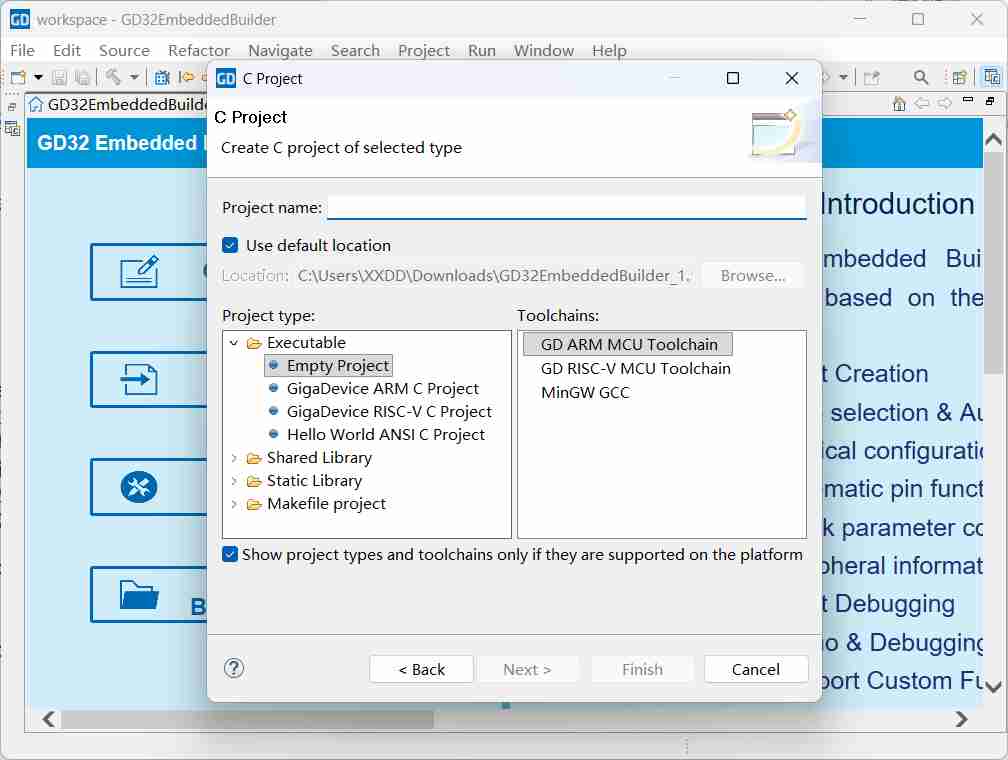 项目名称可自定义,重点是要勾选 创建 GD RISC-V 工程,
