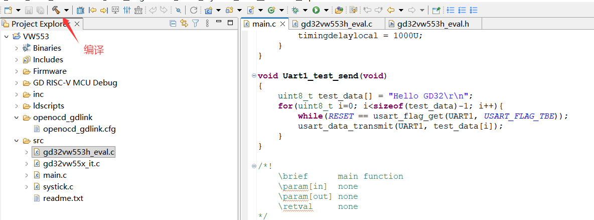 打开gd32vw553h_eval.c文件,进入该文件的.h文件