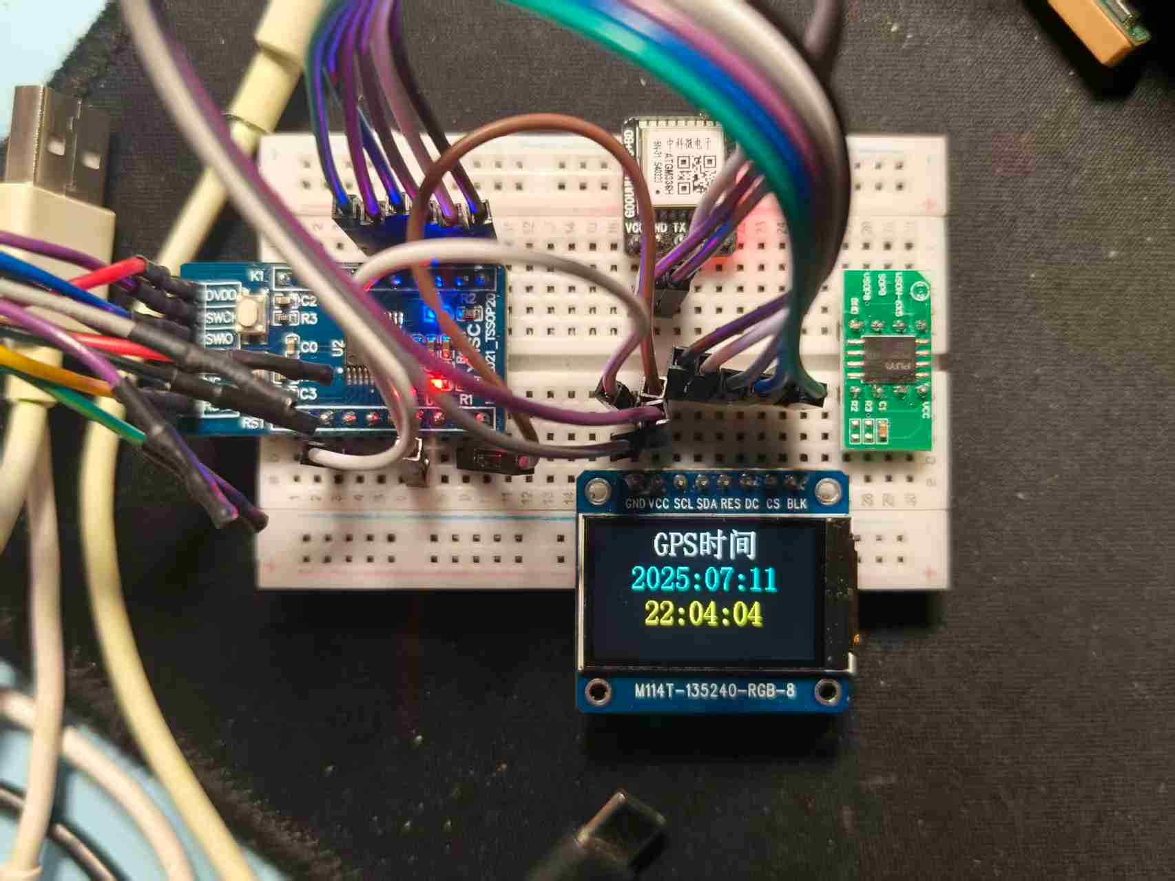 在$GNZDA,之后存在着081505.000,这就是UTC时间,是英国本初子午线的时间,和北京时间相差8小时,所以需要进行+8操作就是我们的时间,在这里就是16点15分05秒,2025年11月七号。