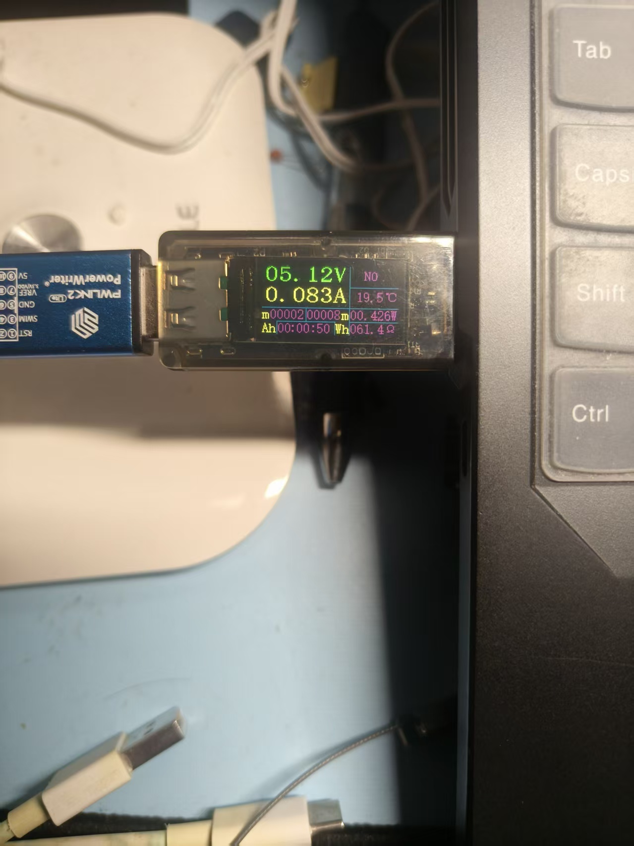 稳定运行后的功耗如下(差不多0.5w),除去屏幕这个大头剩下的芯片功耗还是蛮低的。