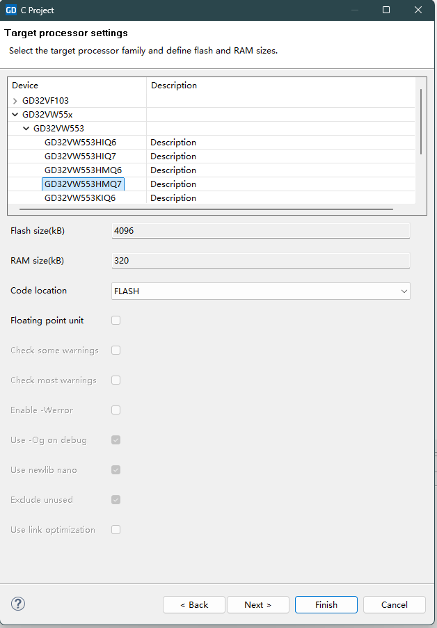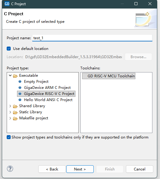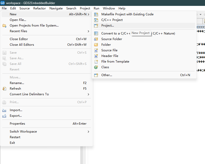 解压后打开GD32EmbeddedBuilder,依次进行如下图中的操作新建文件: