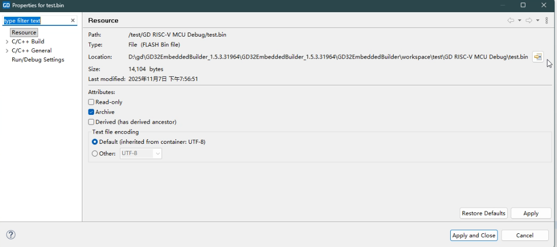 等待完成后,我们通过properties找到bin文件的位置,复制地址