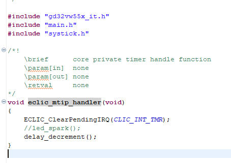 并且,在gd32vw55x_it.c中删除或注释掉led_spark(),如下图