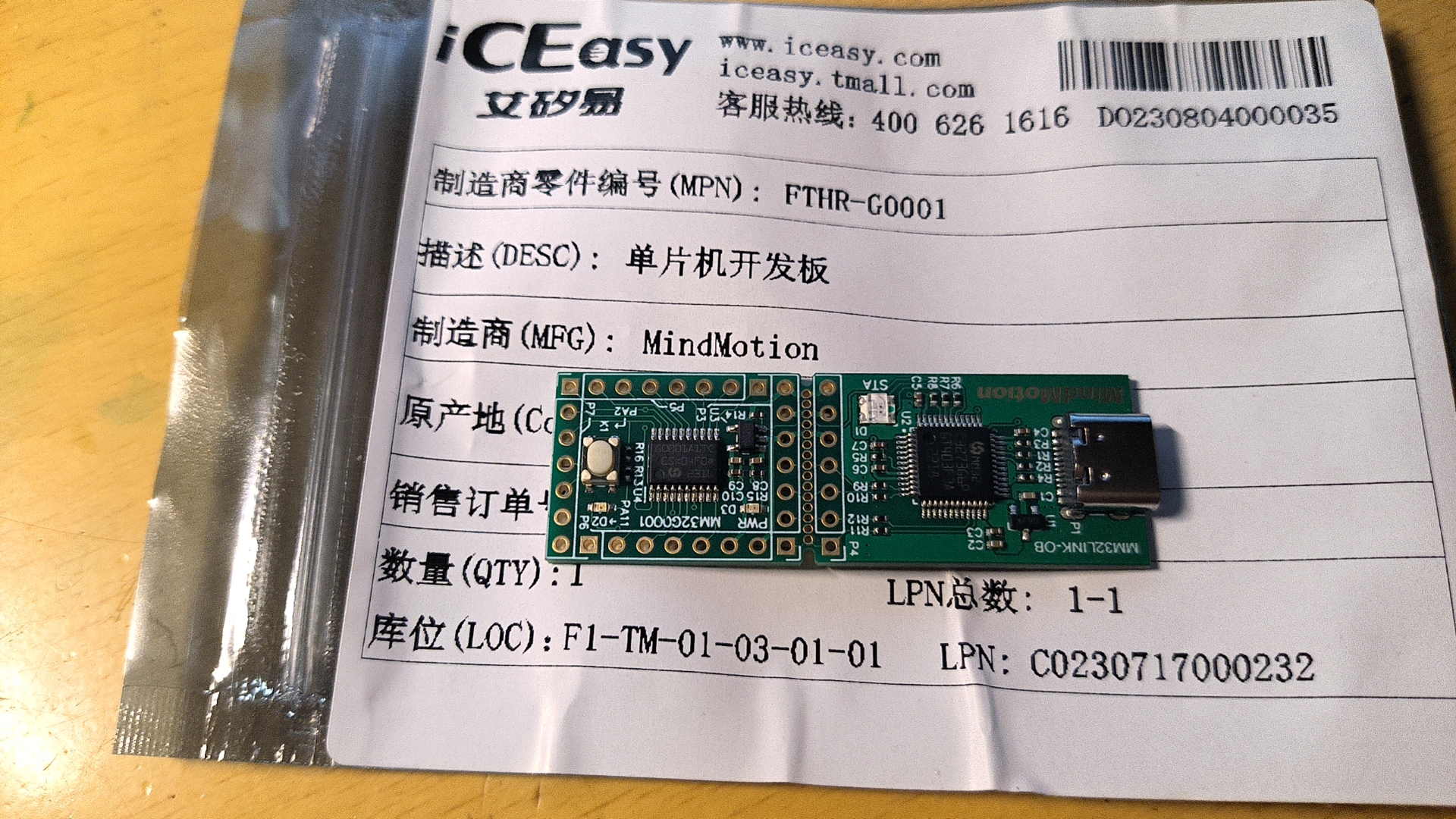申请了FTHR-G0001开发板,隔天就收到了。